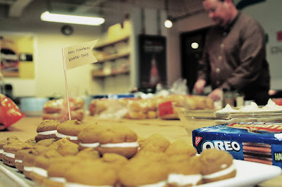 - Flip over half of the completely cooled whoopies so the flat side is facing up.